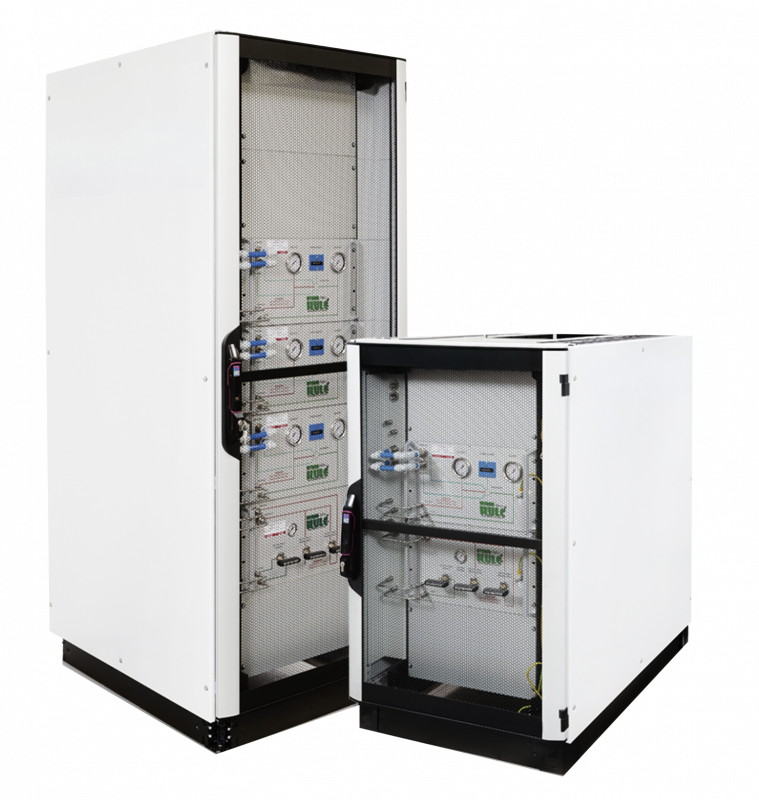 Mit dieser Konfiguration wird ein Gasauslassdurchfluss von 5 Nm³/h Wasserstoff pro Stunde erreicht. Für höhere Auslasskapazitäten können problemlos weitere Module angeschlossen werden.